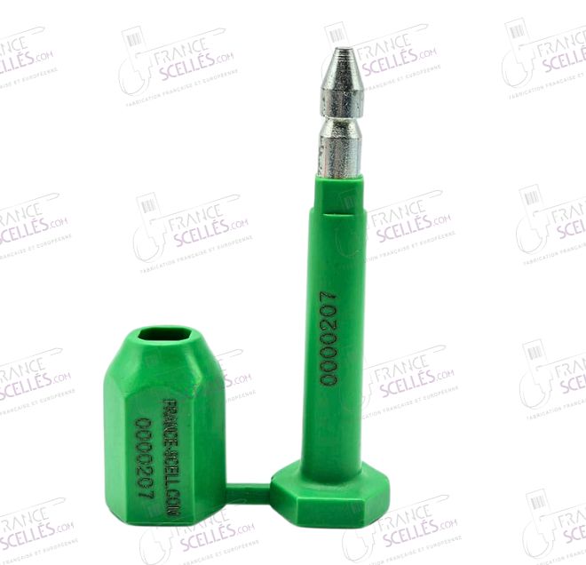 Aussi appelé « plomb bouteille « ou « clou », ce scellé Haute sécurité est adapté pour tous les envois à l’Export par containers maritimes, cargos aériens….